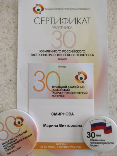 В 30 юбилейном российском гастроэнтерологическом конгрессе, который проходил в Москве с 29 сентября по 1 октября, поучаствовали наши врачи-гастроэнтерологи Смирнова Марина Викторовна и Ефимова Ольга Валентиновна!